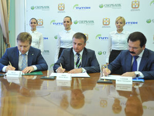 Подписи под документом поставили первый вице-председатель Правления Сбербанка России Максим Полетаев, первый заместитель председателя регионального кабинета министров Вячеслав Синюгин и председатель совета директоров ЗАО «ГК «Титан» Михаил Сутягинский, сообщает "Омская губерния".