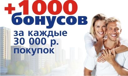 Владельцы карт «БОНУС-Новосел» при совершении покупок в гипермаркетах «Бауцентр» помимо обычного начисления 40 бонусов за каждые 1 000 рублей покупки, дополнительно получают 1 000 бонусов за каждый 30 000 рублей покупки.