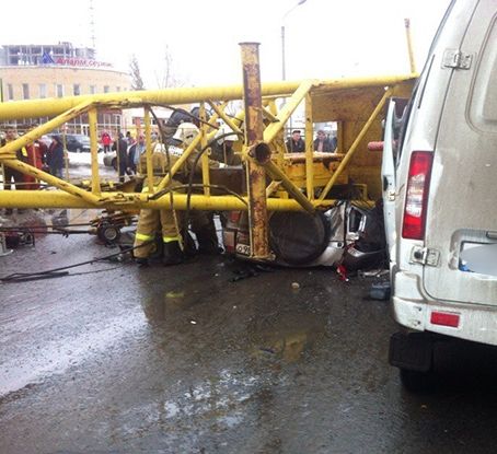 Как сообщил глава ГУ МЧС, строительная конструкция упала на два автомобиля. В результате погибли четыре человека, еще двое находятся в тяжелом состоянии.