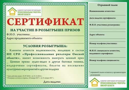 Теги: сертификат, СРО «Профессиональные риэлторы Омской области», призы