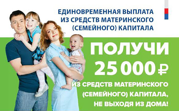 Напомним, что с июня этого года владельцы сертификатов на материнский (семейный) капитал могли обратиться с заявлением о получении выплаты в размере 25 тысяч рублей, или в размере фактического остатка средств, не превышающего указанной суммы. На данную меру поддержки, независимо от достатка или нуждаемости, могли рассчитывать все семьи с детьми, проживающие на территории Российской Федерации при условии, что семья не использовала всю сумму капитала по основным направлениям (улучшение жилищных условий, получение образования детьми, увеличение накопительной пенсии матери, на приобретение товаров и услуг, предназначенных для социальной адаптации и интеграции в общество детей-инвалидов).