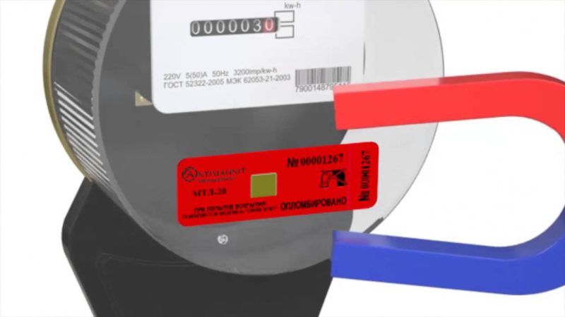 Защита представляет собой особую пломбу с магниточувствительным индикатором. В том случае, когда потребитель услуг водоснабжения захочет изменить показания прибора с помощью сильного магнита, пломба будет менять цвет. При попытке удалить наклейку на счетчике будет оставаться несмываемый след.