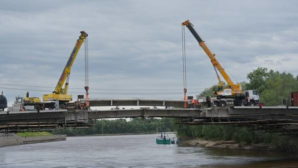 На сегодняшний день мостостроители полностью завершили основные демонтажные работы центрального пролета моста и приступили к устройству монолитной опорной балки на правобережной и левобережной консолях моста. На нее будет опираться новое металлическое пролетное строение, – сообщили в пресс-службе администрации Омска. Отмечается, что новое металлическое пролетное строение легче старого: общий вес старого пролета — 320 тонн, новый весит 200 тонн. Таким образом, будет уменьшена нагрузка на консольную часть, но при этом грузоподъемность и основные параметры моста останутся прежними.