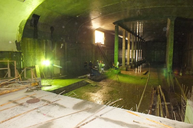 – На сегодняшний день мы имеем недостроенный вентиляционный ствол, недостроенный второй выход, который должен располагаться по улице К.Путь. Задача на период сухой консервации этот выход заторцевать, чтобы вода не попадала. На месте шахтного ствола, через который происходит погрузка, выгрузка всех стройматериалов, будет венткиоск. Далее платформенная часть, далее станционная водоотливная установка, тоже будет доведена до проектного положения, – пояснил технический директор КУОО «Управление заказчика по строительству транспортных объектов и гидротехнических сооружений» Владимир Плеханов.