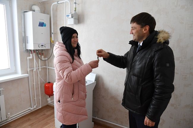Программа по расселению семей, проживающих в жилых контейнерных вагонах в селе Азово, действовала в регионе с 2011 года. За это время квартиры получили 54 семьи, сегодня ключи вручили еще 4-м. Азовчане получили полностью благоустроенное жилье: в квартирах есть газ, вода, электричество, установлены сантехника и газовые плиты, выполнена внутренняя отделка помещений.