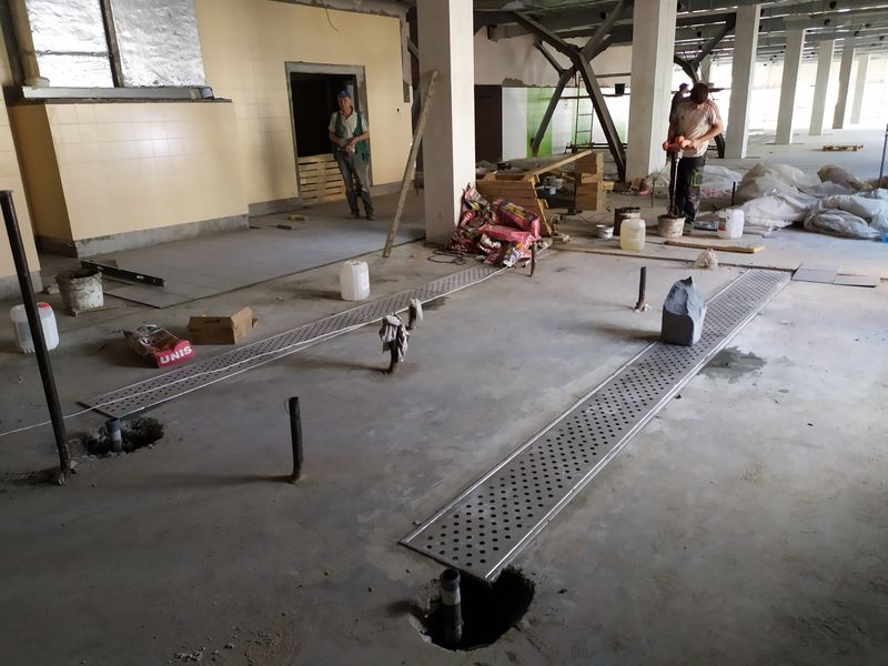 Параллельно в здании идут отделочные работы. На 89 % завершена штукатурка стен, на 35 % – облицовка стен и полов керамогранитом. Устройство стяжки пола выполнено на 97 %. Кроме того, ведется сборка каркаса подвесных потолков.