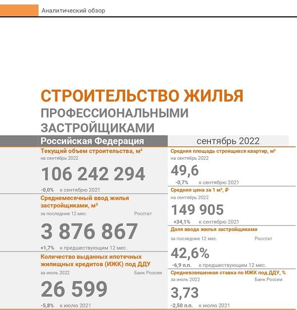 Авторы обзора отмечают значительное ускорение сроков возведения жилья. Если по состоянию на сентябрь 2021 года наибольшая доля строек (31,8 % возводимого жилья) приходилась на объекты, разрешение на строительство которых было выдано в 2018 году, то в настоящее время более всего (28,4 %) возводится жилья по разрешениям, выданным всего лишь год назад. Всего до конца этого года застройщики планируют ввести в эксплуатацию более 18, 96 млн кв. м жилья.