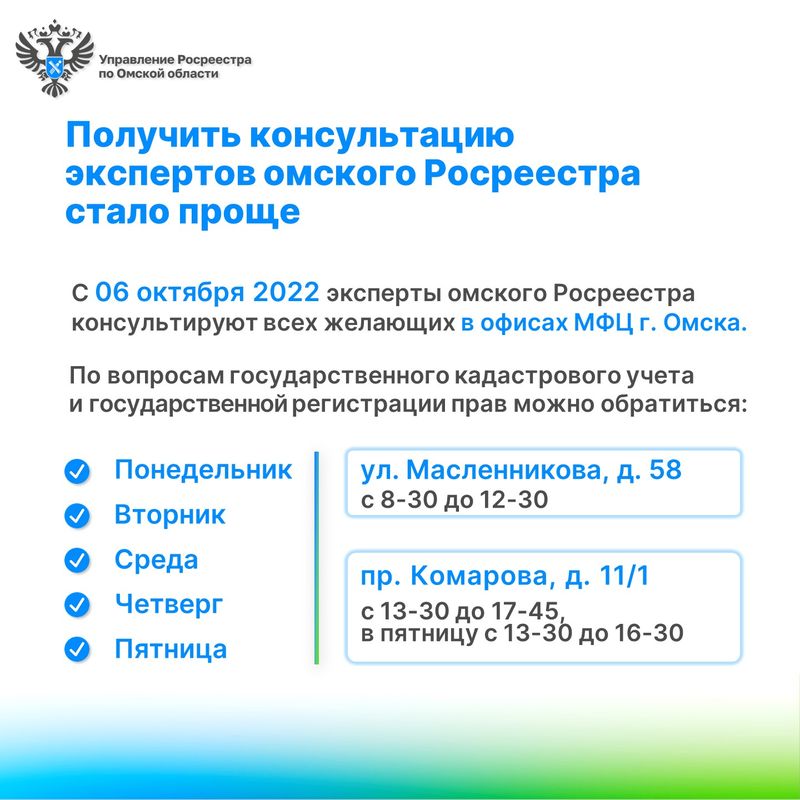 Консультации будут проходить на постоянной и безвозмездной основе. О том, каким еще способом можно получить консультацию специалистов омского Росреестра, можно узнать ВКонтакте и в Telegram.