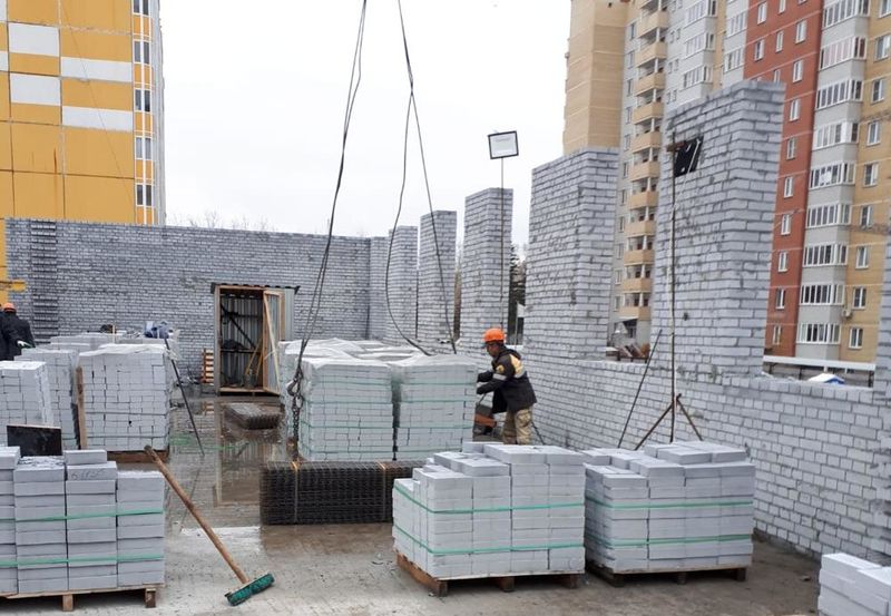 Отметим, что здание учебного учреждения будет состоять из 3-х соединенных между собой корпусов-блоков: А, Б и В. Строители занимаются возведением одновременно всех трёх блоков.