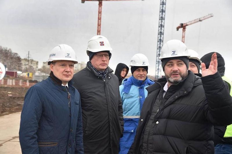 Глава Омской области и президент Национального объединения строителей посетили стройплощадку микрорайона «Зелёная река»