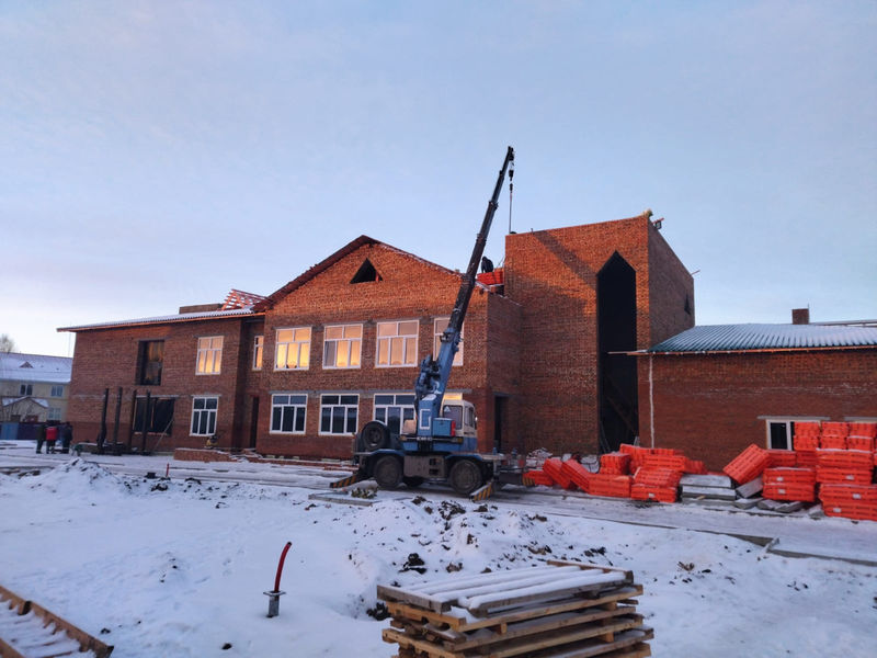 В Большеречье продолжается строительство нового детского сада. Сейчас рабочие завершают мероприятия по закрытию теплового контура здания и уже приступили к внутренним работам. Также на объекте продолжается устройство и утепление кровли, ведется монтаж лестниц. В помещениях работают электрики и специалисты по запуску теплового узла.