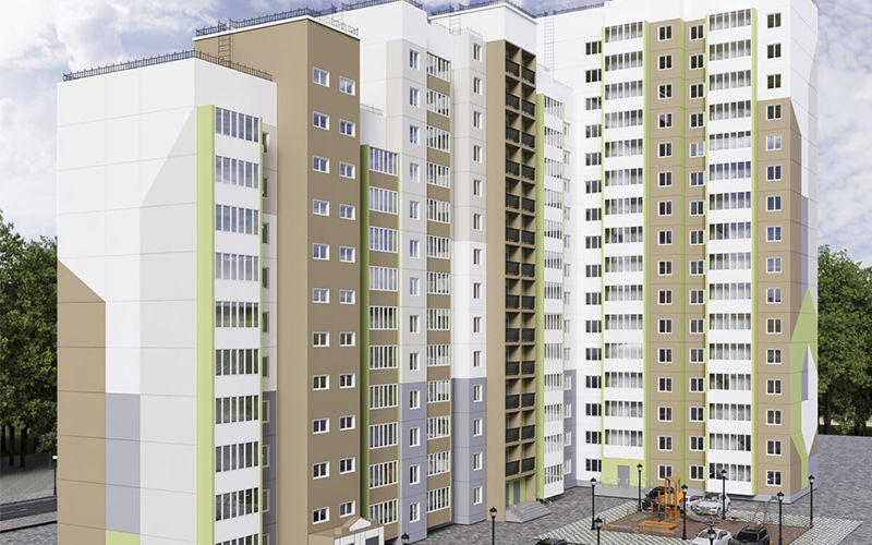 Это 3-подъездный дом разной этажности: 10 – 13 – 16 этажей. В нем представлены с 1- 2- и 3-комнатные квартиры площадью от 42 до 86 кв. м.