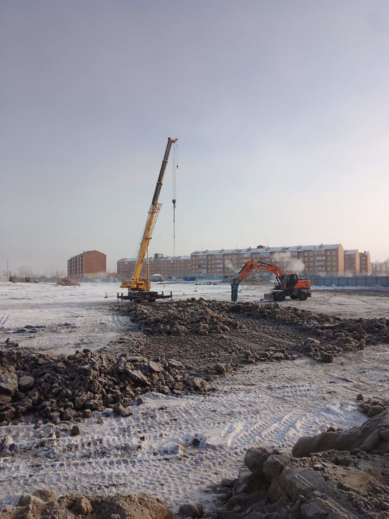 Подрядчик проекта – ООО «Капитал развитие». Сейчас на площадке объекта с помощью спецтехникиснимается грунт под котлован. Уже очищена и огорожена территория строительной площадки. На место будущей школы доставили сваи и песок.