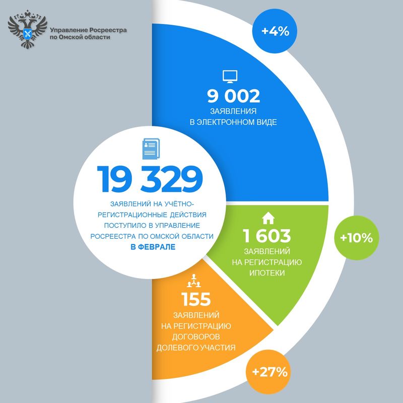 В феврале в омский Росреестр заявлений на регистрацию поступило на 12 % больше, чем в январе
