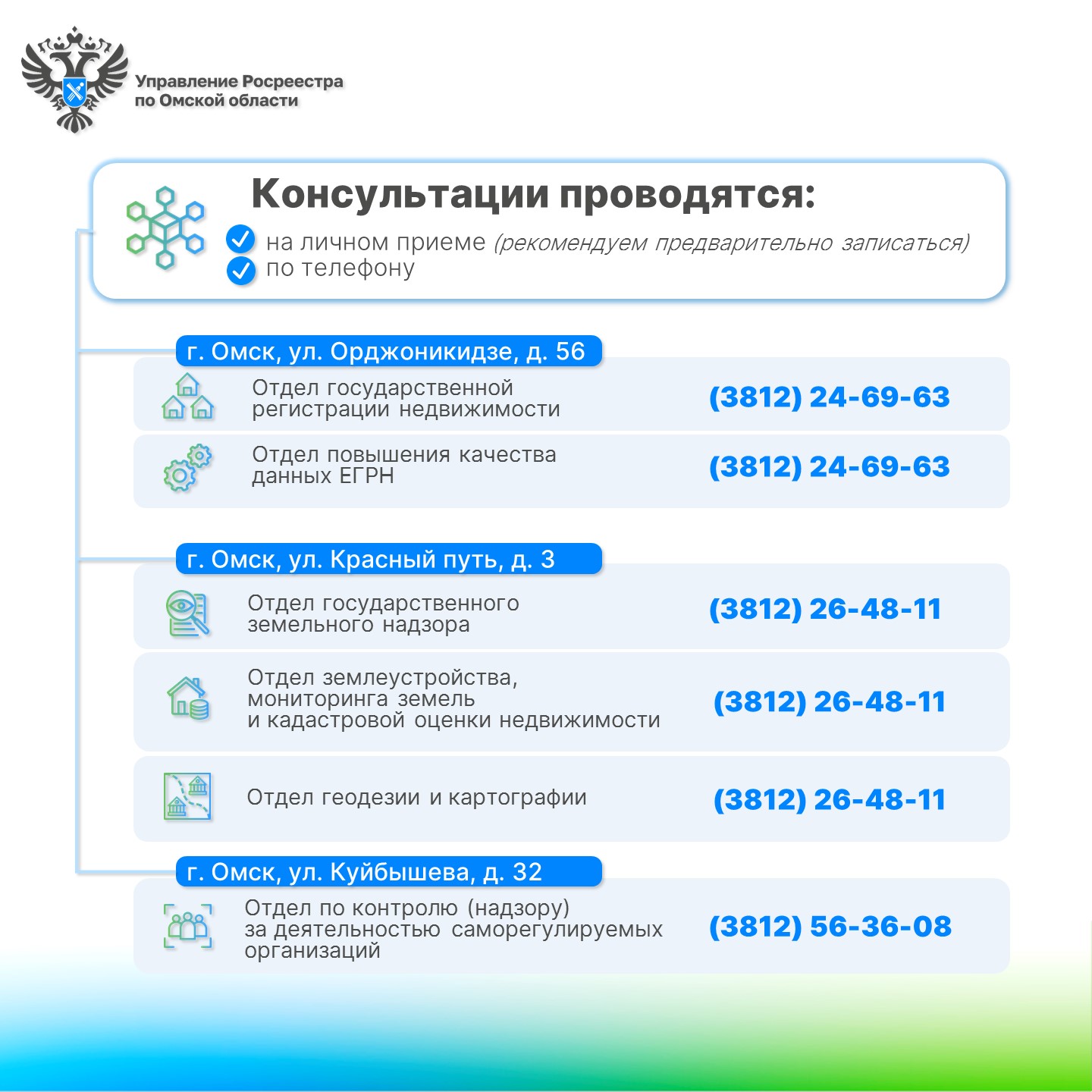 Обратиться за консультациями можно как очно так и по телефону. Специалисты Управления Росреестра по Омской области будут консультировать граждан в четверг с 9:00 до 17:30.