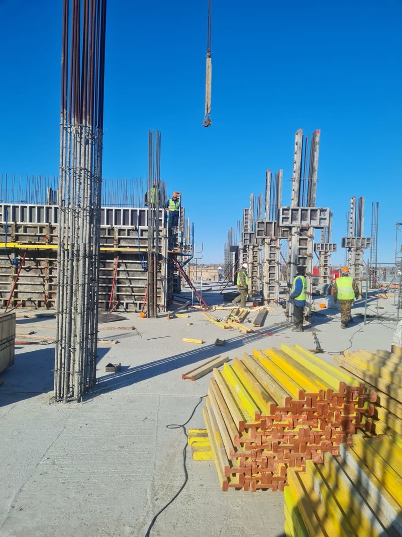 Строители уже подготовили каркас опалубки для заливки бетона.