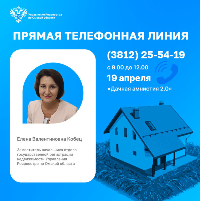 На этот и другие вопросы ответит заместитель начальника отдела государственной регистрации недвижимости Елена Кобец по телефону: 8 (3812) 25-54-19. Звонки будут приниматься 19 апреля с 9:00 до 12:00.