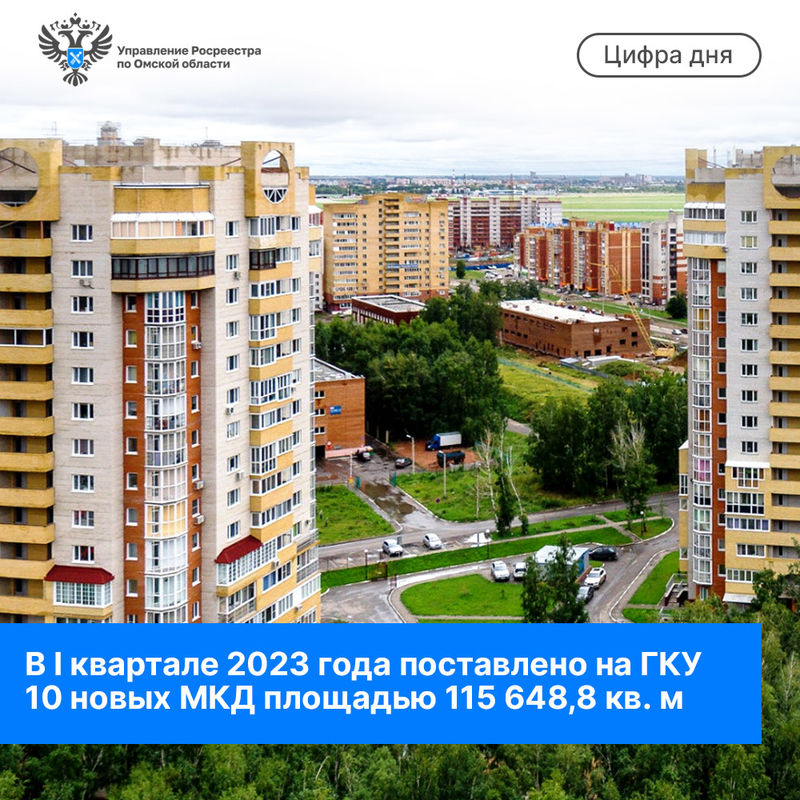 Управлением Росреестра по Омской области в 1-м квартале этого года поставлено на государственный кадастровый учет 10 новых многоквартирных жилых домов высотой от 8 до 23 этажей. Все они расположены в Омске. Площадь возведенных объектов составила 115 648,8 кв. м, что на 26 % больше показателя за предыдущий квартал (91 783 кв. м). В 1-м квартале этого года улучшили свои жилищные условия 1512 омских семей (в 4-м квартал 2022 построено 1113 квартир).