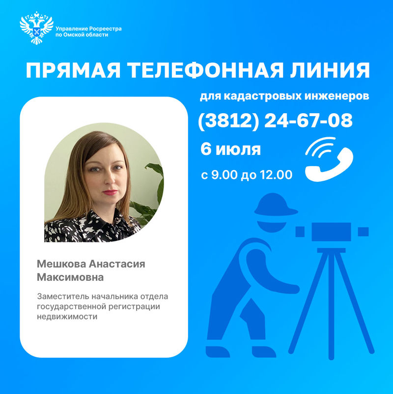 Свои вопросы о взаимодействии с Росреестром специалисты, осуществляющие кадастровые работы на территории Омской области, могут задать по телефону: 8(3812) 24-67-08.
