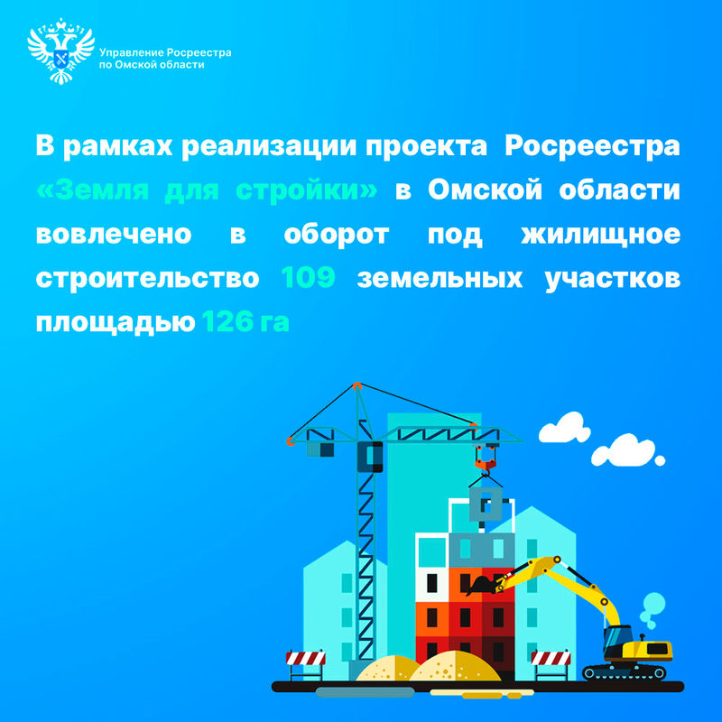 Реализация государственной программы «Национальная система пространственных данных» и «работающего» в рамках нее проекта «Земля для стройки» позволила вовлечь в оборот под жилищное строительство дополнительные, ранее неэффективно используемые 109 земельных участков, расположенных на территории Омской области, общей площадью 126 га.