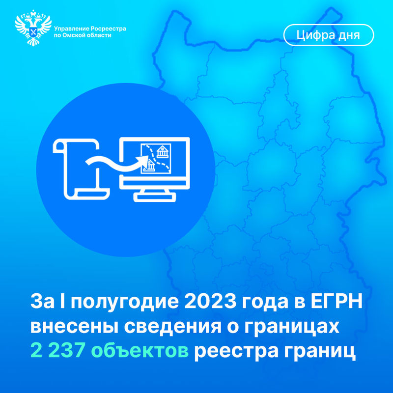 За первые 6 месяцев 2023 года филиал ППК «Роскадастр» по Омской области внес в ЕГРН сведения о границах 2237 объектов реестра границ, из них: