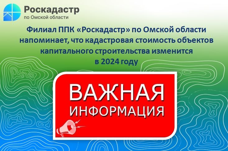 В соответствии с Федеральным законом от 3 июля 2016 года № 237-ФЗ «О государственной кадастровой оценке» в 2023 году Омский центр кадастровой оценки и технической документации проводит государственную кадастровую оценку, по итогам которой с 1 января 2024 года кадастровая стоимость объектов капитального строительства изменится.