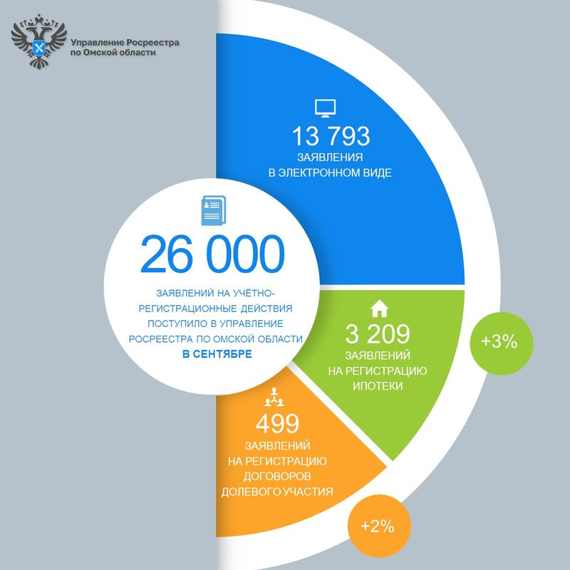 В сентябре омичи подали в омский Росреестр ровно 26 000 заявлений на учетно-регистрационные действия с недвижимостью (это оформление прав на квартиры и доли в них, дома и земельные участки под ними, нежилые помещения – гаражи, коммерческую недвижимость и на другое недвижимое имущество). Из общего количества в электронном виде направлено 13 793 пакета документов (это 53 % от общего числа).