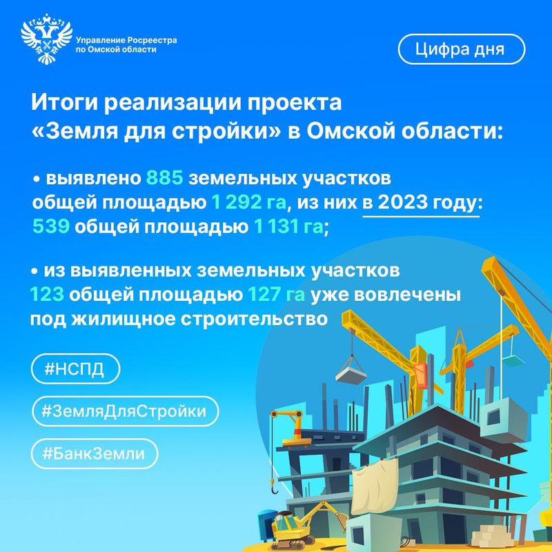 «За время существования проекта выявлено 885 участков общей площадью 1292 га, из них подавляющее большинство – в 2023 году: 539 сегментов общей площадью 1131 га. В «Банк земли» Омской области включены потенциально привлекательные для строительства многоквартирных и индивидуальных жилых домов земельные участки и территории, расположенные в пределах 23-х населенных пунктов региона, и это города Омск с прилегающей к нему 30-километровой зоной и Калачинск, а также ряд городских поселений и сел Азовского, Исилькульского, Полтавского, Павлоградского, Кормиловского, Крутинского, Муромцевского, Русско-Полянского, Тевризского и Омского районов Омской области. Мощный строительный потенциал нашего региона помогает Сибирскому федеральному округу быть в тройке лидеров по объему выявленных земель под жилищное строительство», – отметил руководитель ведомства Сергей Чаплин.