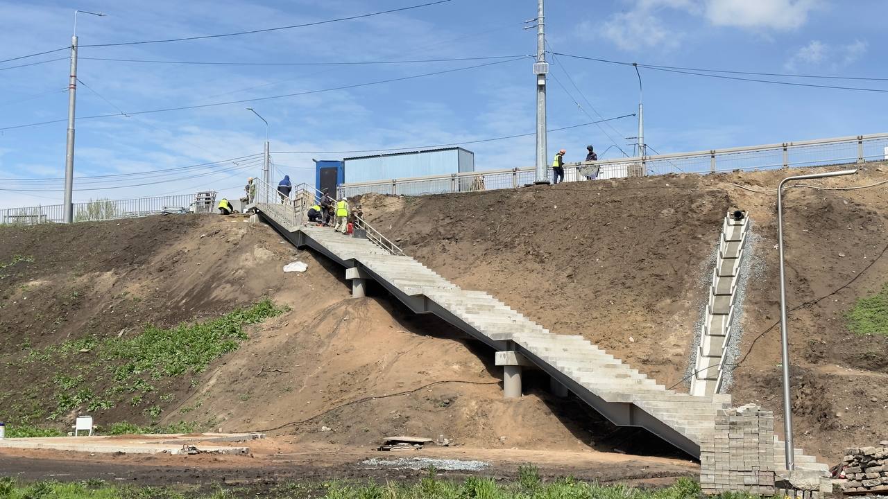 Накануне началась установка поручней на лестничных сходах со стороны Левого берега, сами лестницы уже собраны.