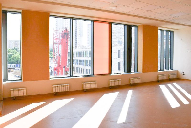 В здании уже полностью сделаны кровля и пол, фасад готов на 85 %. Сейчас строители укладывают линолеум, собирают подвесные потолки, укладывают керамогранитную плитку в санузлах, столовой, атриумах и на лестничных пролетах. В корпусах школы завершается установка внутренних дверей, витражей и противопожарных перегородок. В актовом зале установят большую сцену, профессиональный звук, хороший свет и широкоформатный экран. В спортивном зале красят потолок. Для столовой уже завезли новое оборудование: холодильники, морозильные камеры, плиты, духовые шкафы.