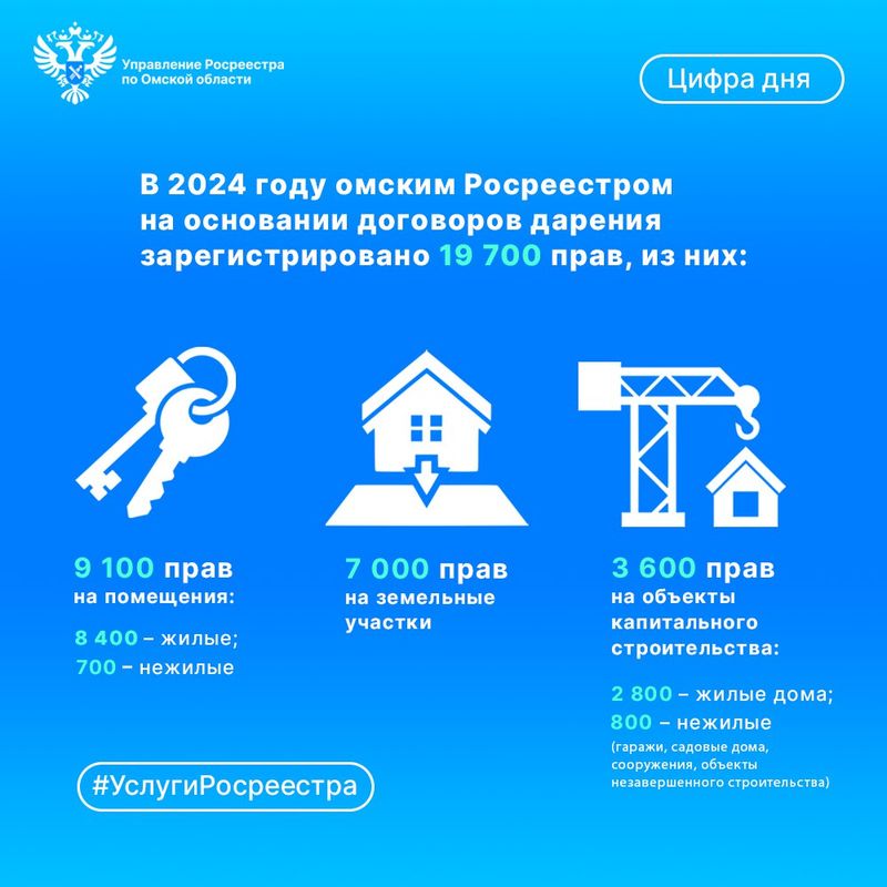 В прошлом году Управлением Росреестра по Омской области на основании договоров дарения зарегистрировано 19 700 прав, из них: