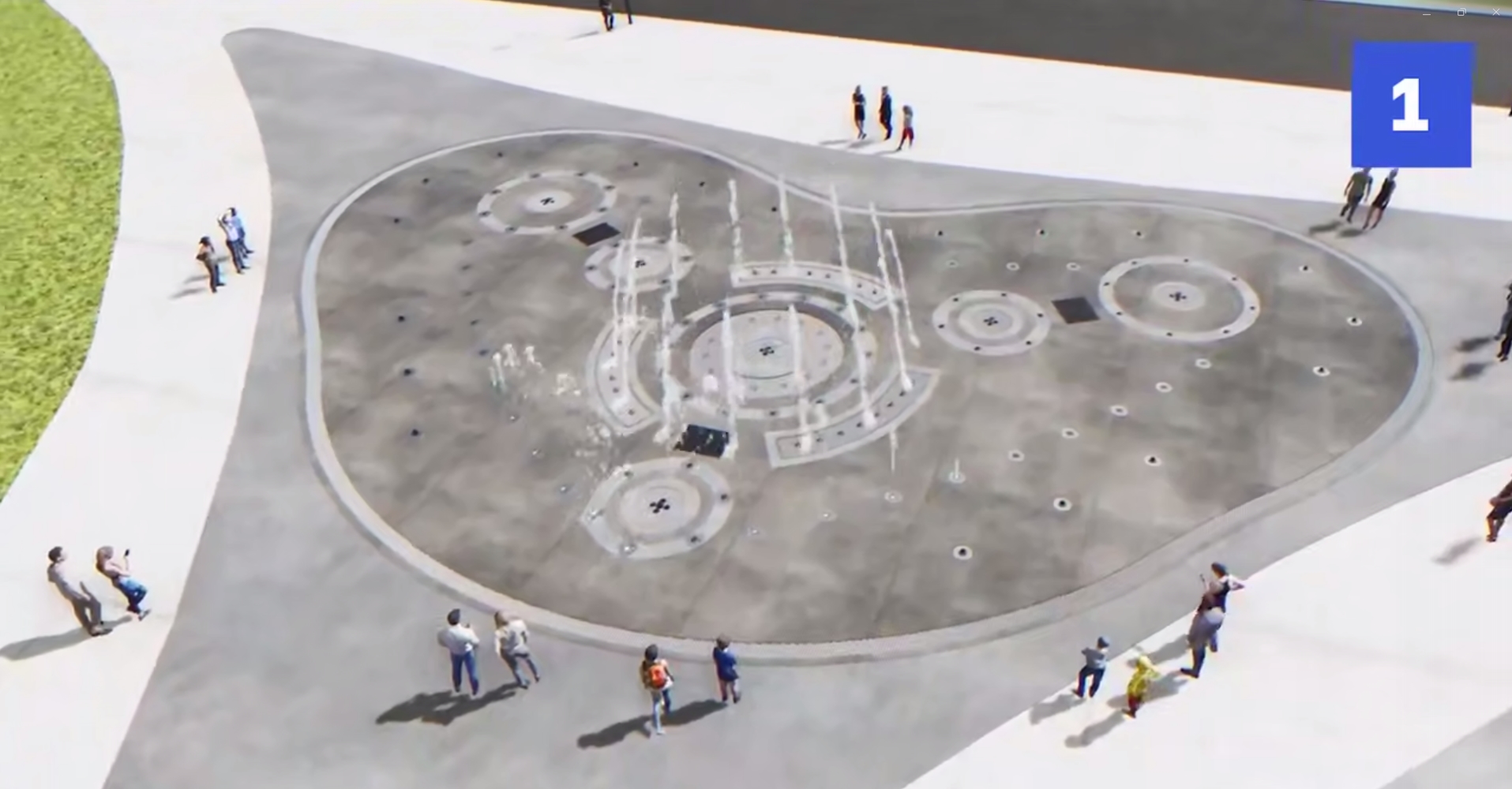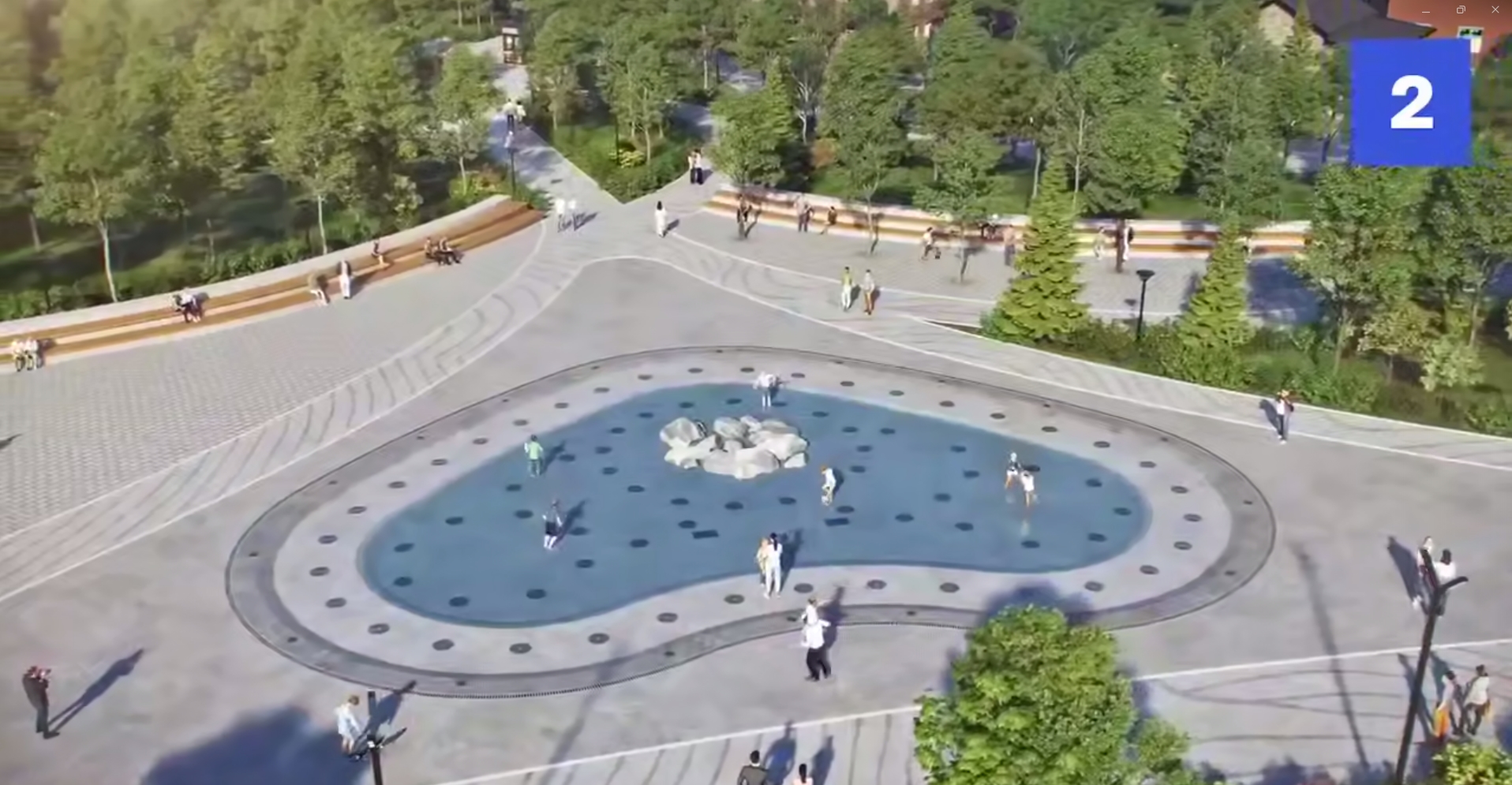 Предложено 2 варианта концепции фонтана. Один проект выполнен с акцентом на динамику, другой – на умиротворение и эффект отражения: