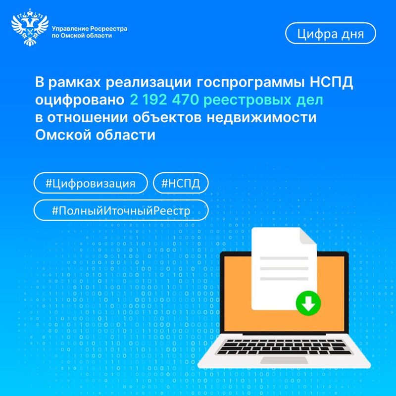 К 1 января 2026 года специалистами Филиала ППК «Роскадастр» по Омской в электронный вид переведено 2 192 470 реестровых дел, что составляет 80 % от общего количества. Это исторически накопленные и хранящихся на бумажных носителях папки-документы, которые постранично сканировались и в оцифрованном виде загружались в информационную систему «Архив» с целью дальнейшего использования при предоставлении государственных услуг Росреестра и Роскадастра. В 2025 году в цифру переведено 371 480 дел (при плане 371 195), в текущем году эта работа будет продолжена.