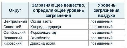 В целом в октябре 2011 года уровень загрязнения воздуха был повышенным на всей территории Омска. При этом в каждом округе был свой "загрязнитель". Низкий уровень загрязнения на Левобережье сменился повышенным за счет диоксида азота. Октябрьский округ, наоборот, немного улучшил свою атмосферу, хотя в воздухе превышена концентрация формальдегида. В остальных округах показатели не изменились. Центральный округ загрязнен оксидом азота, Советский — хлоридом водорода, а Ленинский — этилбензолом.