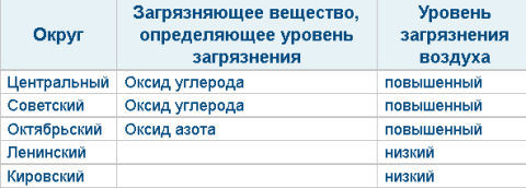 Эксперты отмечают, что в октябре 2012 года в целом по городу уровень загрязнения воздуха был повышенным. Особенно это касается трех округов. И если экология Советского на протяжении уже нескольких месяцев остается неблагоприятной, то в Центральном и Октябрьском районах атмосфера ухудшилась по сравнению с первым месяцем осени. В Кировском и Ленинском районах концентрация "химии" в воздухе была низкой.