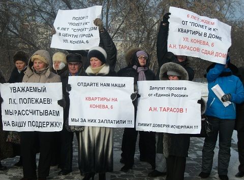 На 15 декабря в Омске назначены сразу несколько протестных акций - митинг дольщиков, Марш свободы и 10 пикетов против роста платы за проезд. Мероприятия планируют провести, несмотря на аномальный мороз в -36°С с ветром. Пикеты в разных частях города организует КПРФ. Несмотря на аномальные морозы, в 13 часов у здания Областной библиотеки имени А.С. Пушкина пройдет очередной митинг дольщиков дома Конева, 6. Генеральный директор ООО "СХ "Полет и К" Александр Тарасов многократно переносил сроки по достройке дома. Несмотря на его последние обещания ввести отопление еще в ноябре 2012 года, объект до сих пор не отапливается. Об этом ИА "Премьер-Инфо" сообщила участница инициативной группы Алена Ефремова. Кроме того, два подъезда так и не остеклили. Поучаствовать в митинге может сотня человек, но дольщица надеется на присутствие хотя бы 20 человек. В последний раз подобное мероприятие организовывали 6 октября 2012 года. Напоминаем, что строительство объекта должно было завершиться в 4 квартале 2007 года.