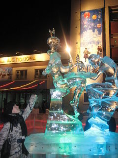 Как сообщает пресс-служба Радиозавода им. Попова (предприятие является основным производственным активом МКР), ледовый городок расположился у профилактория "Восход" на площади более гектара и состоит из 104 уникальных ледовых скульптур и двух горок – 3 и 5 метров.