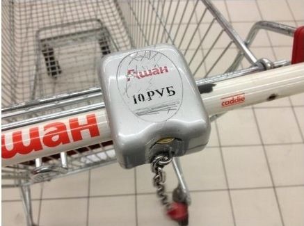 Руководство магазина перепробовало разные методы, например, надписи-напоминалки на тележках "Припаркуй меня". Но все равно сотрудникам "Ашана" приходилось слоняться по всей "Меге", собирая повсюду свои тележки. Тогда владельцы супермаркета выбрали самый эффективный способ - ударить по карману покупателей. Ведь вряд ли кто-то захочет расстаться пускай даже и с мелочью, но зато своей.