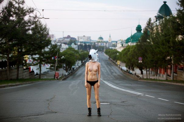 Омский фотограф Николай Рождественский "взорвал" Интернет. На он выложил фото девушки топлесс с надетой на голову фигурой коня.
