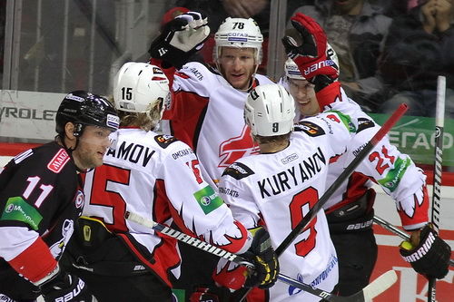 Первую шайбу в матче забросил игрок "ястребов" Павел Махановский. Затем хозяева площадки забили две шайбы в ворота Олега Шилина. Но хоккеисты "Авангарда" не сдались и сравняли счет. Вначале Штефан Ружичка, а после того, как челябинцы снова вышли вперед, равновесие установил Никита Пивцакин.